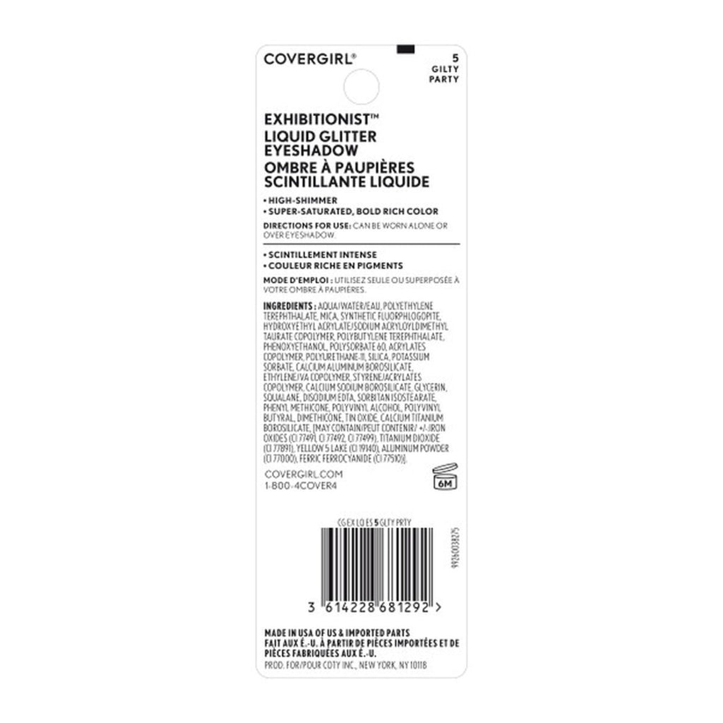 Dance the night away in silky, glittery eyeshadows that never let you down. These liquid shadows are packed with tiny stars of pigment for ultra-reflective shine on your lids. COVERGIRL Exhibitionist Liquid Glitter Eyeshadow is quick drying, so you can whip up dramatic eye looks anywhere! You can also use it as an eyeliner or highlighter to take your makeup game to the next level! With its unique formulation, this liquid glitter eyeshadow skips the fall-out and lasts all day and night. You won’t regret adding some sparkle with these megawatt shades - all day long.