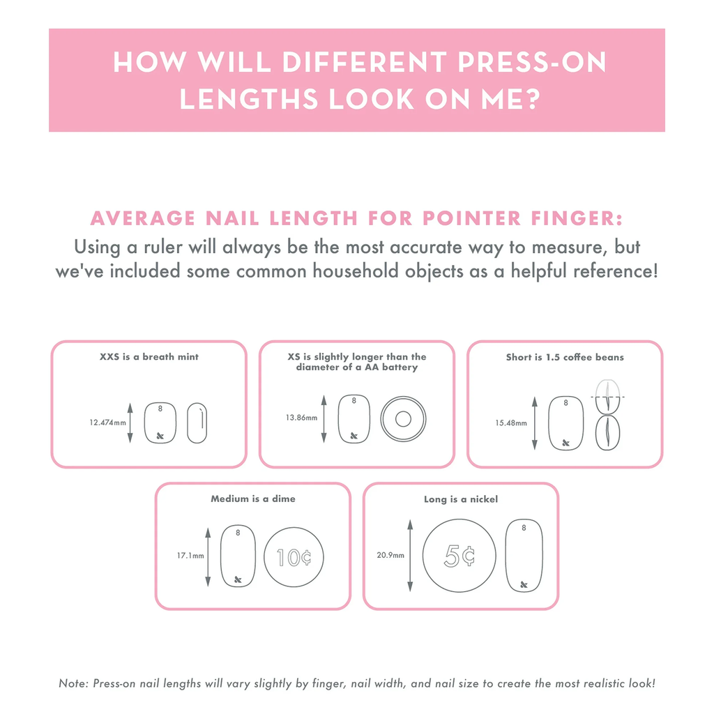 Meet the realest-looking fake nails you've ever seen. The Instant Mani by Olive & June are press-on nails that come in 21 sizes (the most ever!) with the realest-looking fit. Each package contains 42 total nails and everything you need for a perfect press-on mani at home. Straight from the salon, better than gel. Lasts up to 14 days thanks to non-toxic and non-damaging glue. Fake nails never looked so real.