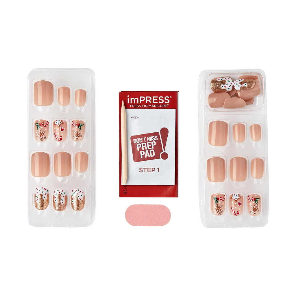 The NO GLUE Mani! Sparkle and shine with these playful winter-inspired imPRESS Press On Holiday designs! Get in on these wish-list worthy nails that bring wintry vibes to your fingertips. With our exclusive PureFit Technology. Be party ready in no time – these one-step gel nails take only minutes to apply! Simply peel off the backing and press on—no dry time, no glue, no mess. NEW & IMPROVED adhesive allows nails to stay put for up to 10 days. Just Peel, Press & GO!