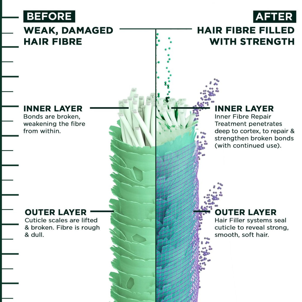 - 4-Step Hair Filler System: Apply Bonding Inner Fiber Repair Pre-Shampoo Treatment and leave on for 5 minutes. Rinse and apply Color Repair Shampoo. Rinse and apply Conditioner to wet hair. Apply Color Repair Serum. Do not rinse