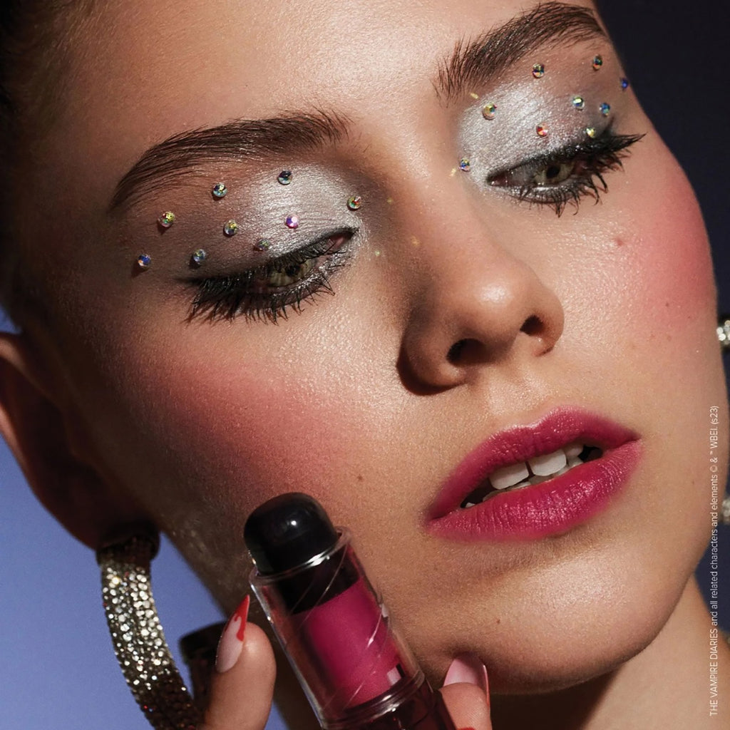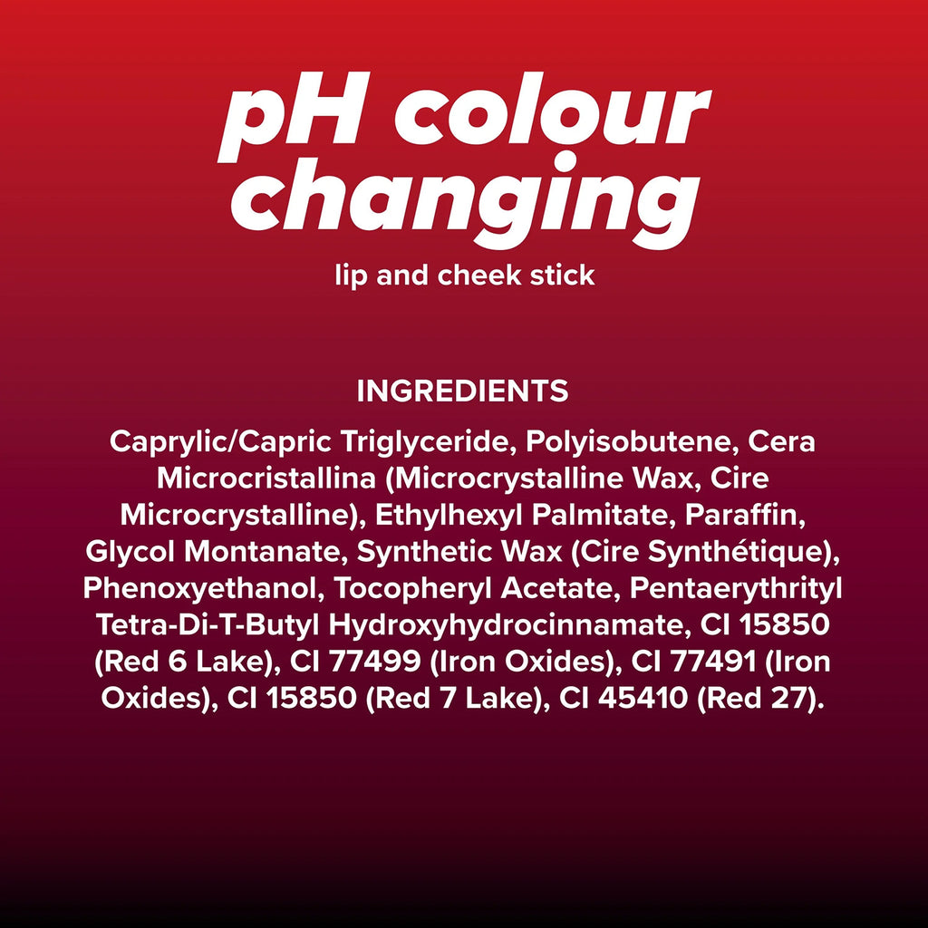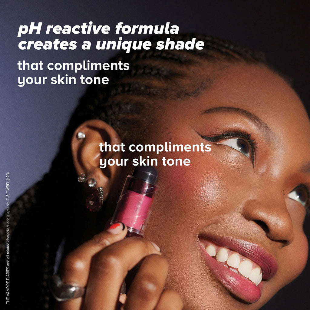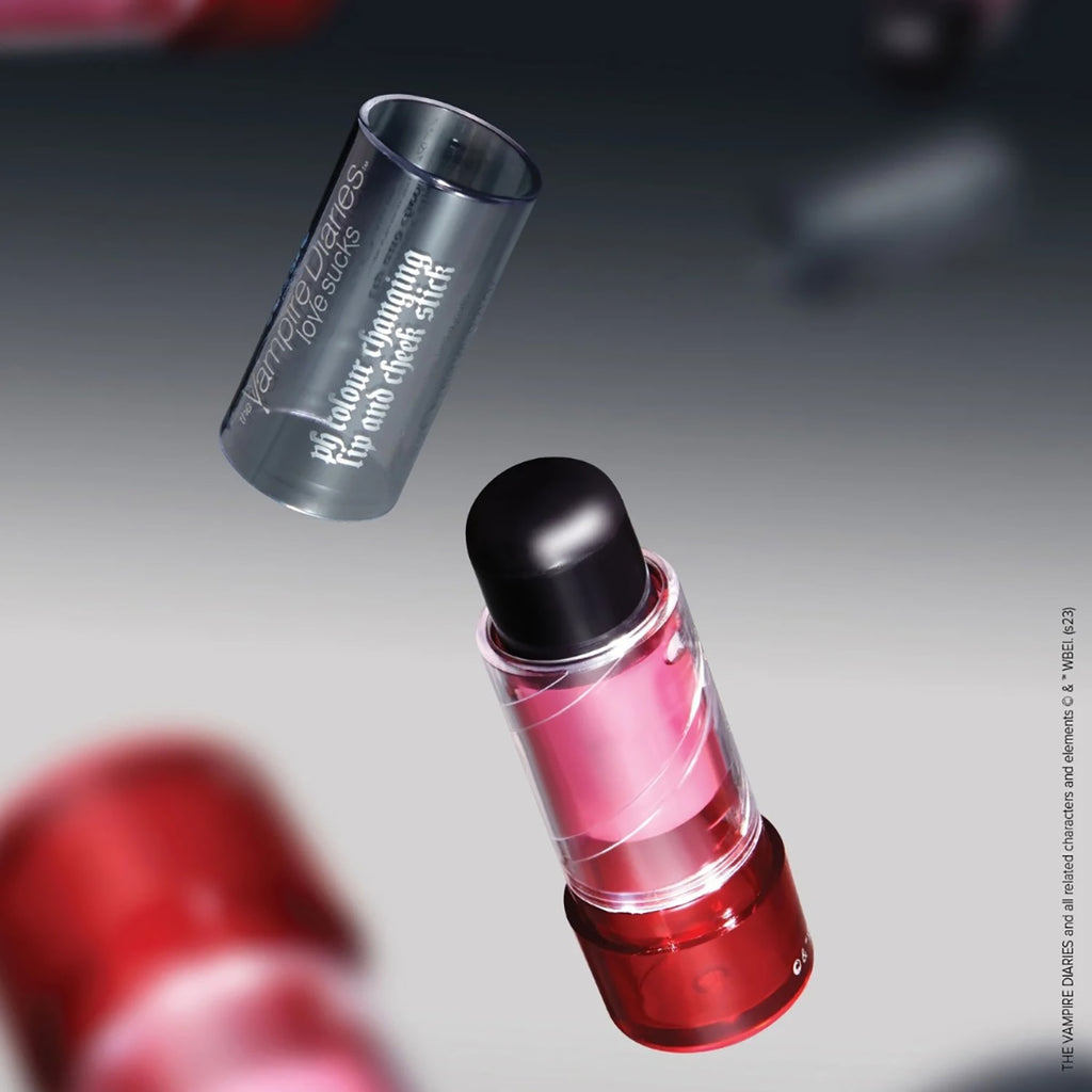 Transform your makeup with this mind-blowing pH colour changing lip and cheek stick from The Vampire Diaries x Lottie London Love Sucks collection. The stick is a hybrid for lips and cheeks which transforms from a haunting black to a stunning truly unique shade of pink that compliments your natural skin tone to add an instant flush of colour to your cheeks and lips with a creamy, dewy finish that blends easily and gives a sheer-to-buildable formula. Because of its innovative formulation, the shade of pink will look unique and different on everyone’s lips and cheeks.