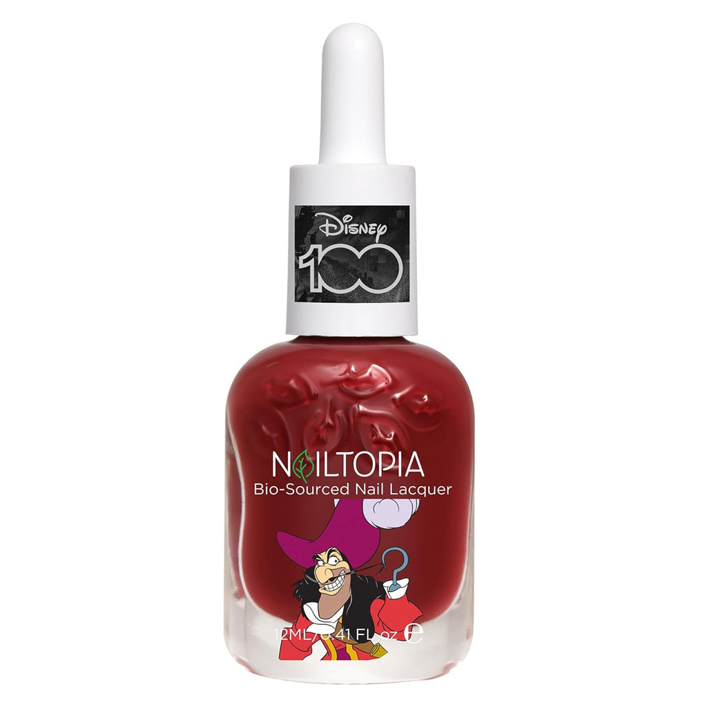 Limited Edition Polish Celebrating Disney's 100th Anniversary. The magic of Disney comes to life on your fingers and toes! Nailtopia's Bio-Sourced Chip Free Nail Lacquer is a nail polish that comes in a mesmerizing and mysterious shade of red that perfectly captures his wicked charm. But this nail lacquer is more than just a beautiful color — it's a conscious choice for your beauty routine. Crafted with care in the USA, Nailtopia's commitment to clean manufacturing shines through in every bottle of its Disney Collection. It is enriched with an all-natural, plant-based formula that is vegan and superfood infused. This means that while you wear your favorite shade, you're also caring for your nails. The strengthening properties of the lacquer help in maintaining the health and integrity of your nails. This nail polish is also quick-drying, so you don't have to worry about smudges or smears. It's the perfect choice for those who are always on the go. Apply a base coat to prepare your nails, then layer on this vibrant nail lacquer, and finally, seal it with a top coat for a flawless, long-lasting, chip-free finish.