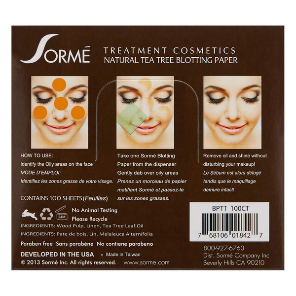 Sorme blotting papers utilize natural green tea extract to calm and protect skin with antioxidant qualities.
